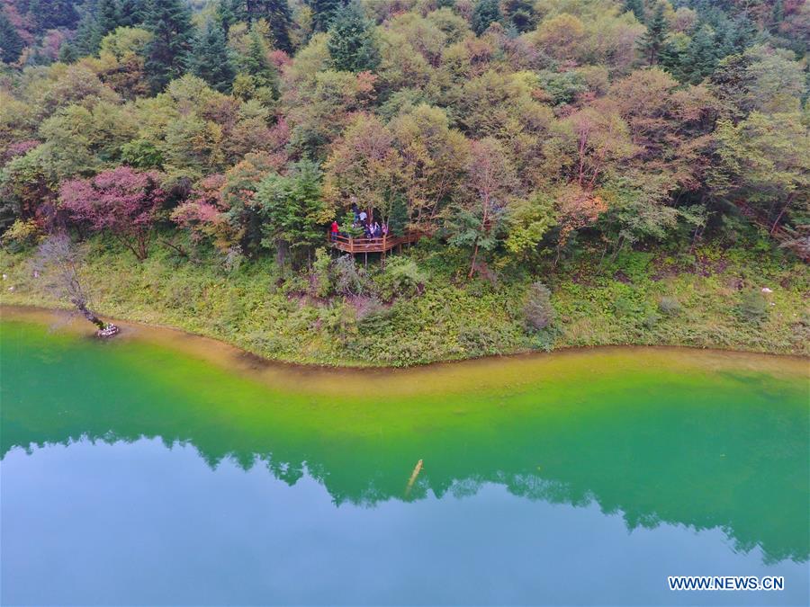 Photo aérienne prise le 19 septembre 2017 montrant le paysage du Parc forestier national Guanegou dans le district de Dangchang à Longnan, dans la province du Gansu (nord-ouest de la Chine). (Xinhua/Liu Kun)