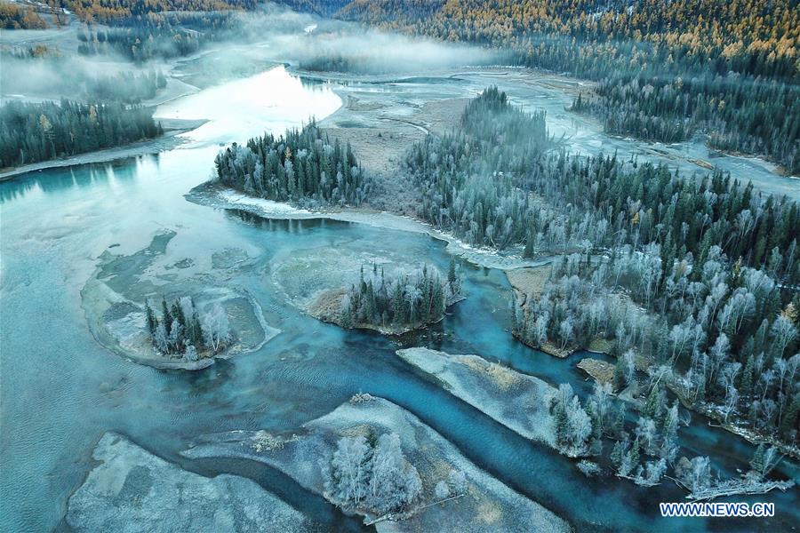 Paysage d'automne dans la zone touristique de Kanas, région autonome ouïgoure du Xinjiang (nord-ouest de la Chine), le 14 octobre 2017. (Xinhua/Liu Xu)