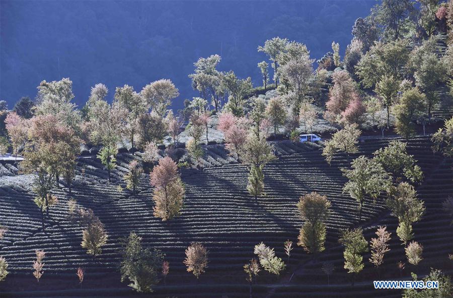 JINGDONG, 6 janvier (Xinhua) -- Une plantation de thé écologique du mont Wuliang, dans le district de Jingdong de la ville de Pu'er, dans la province chinoise du Yunnan (sud-ouest), le 4 janvier 2018. (Photo : Yang Zongyou)