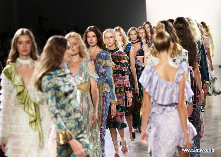 Des mannequins présentent des créations de la collection printemps/été 2019 de Vivienne Hu lors de la semaine de la mode de New York, aux Etats-Unis, le 7 septembre 2018. (Xinhua/Qin Lang)