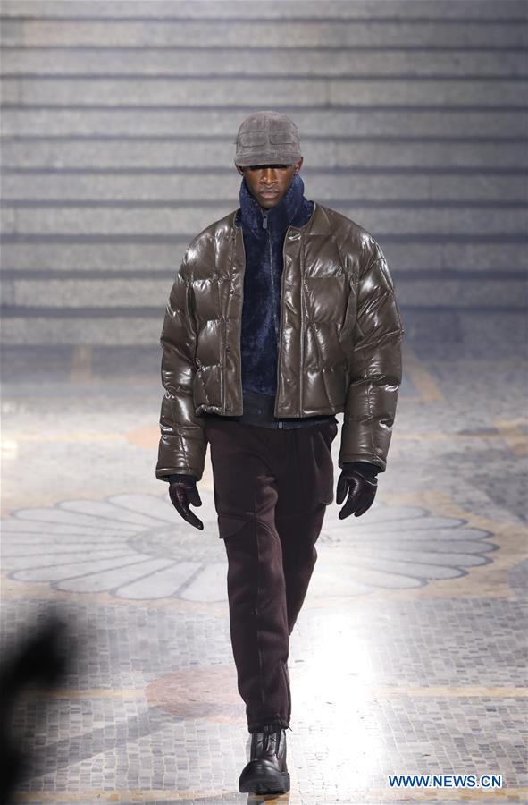 (190111) -- MILAN, Jan. 11, 2019 (Xinhua) -- A model presents a creation at the Ermenegildo Zegna show during Milan Men's Fashion Week in Milan, Italy, Jan. 11, 2019. The Milan Men's Fashion Week Fall/Winter 2019/20 kicked off in Milan on Friday. (Xinhua/Cheng Tingting)
