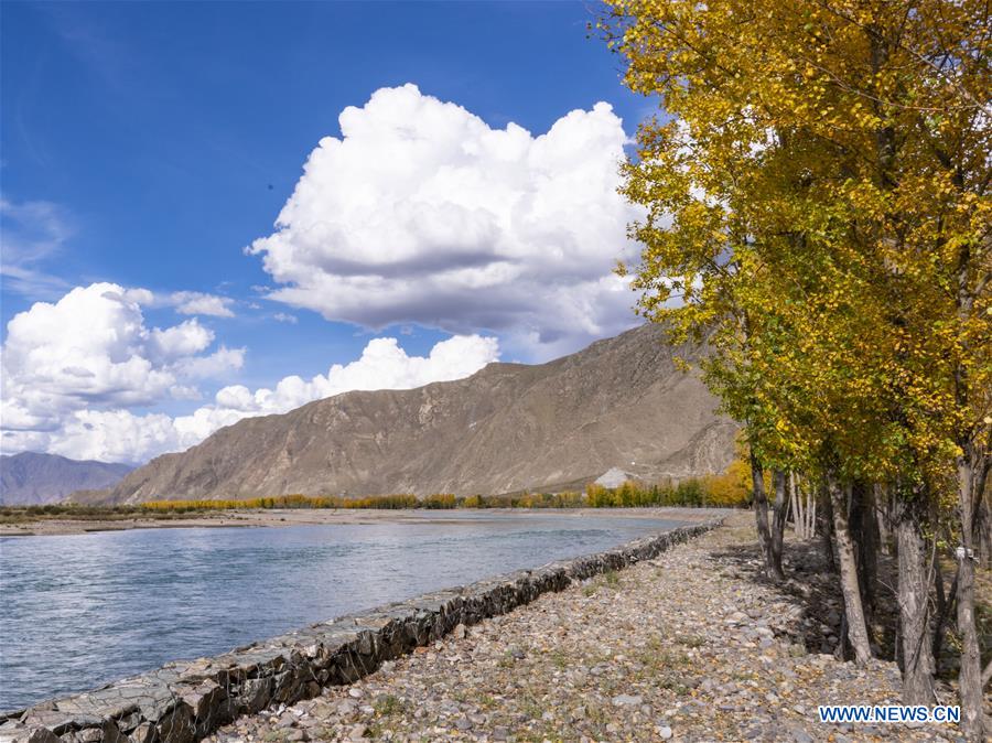 LHASSA, 8 octobre (Xinhua) -- Scène d'automne à Ta'gyai, bourg de l'arrondissement de Dagze, à Lhassa, dans la région autonome chinoise du Tibet (sud-ouest), le 6 octobre 2019. (Photo : Zhang Rufeng)