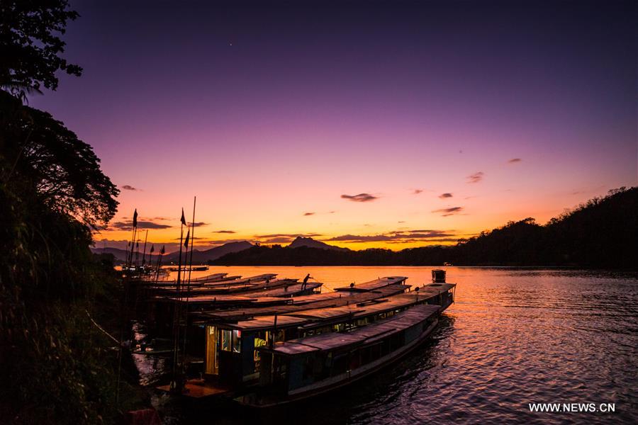 Photo prise le 1er janvier 2020 montrant le paysage au coucher du soleil de Luang Prabang, au Laos. (Xinhua/Kaikeo Saiyasane)