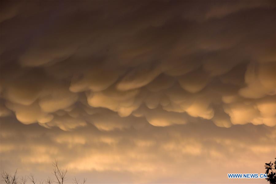 GUIYANG, 7 janvier (Xinhua) -- Des nuages Mammatus au-dessus de la ville de Guiyang, dans la province chinoise du Guizhou (sud-ouest), le 6 janvier 2020. (Photo : Liu Xu)