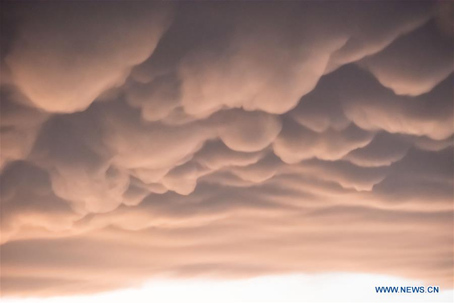 GUIYANG, 7 janvier (Xinhua) -- Des nuages Mammatus au-dessus de la ville de Guiyang, dans la province chinoise du Guizhou (sud-ouest), le 6 janvier 2020. (Photo : Liu Xu)