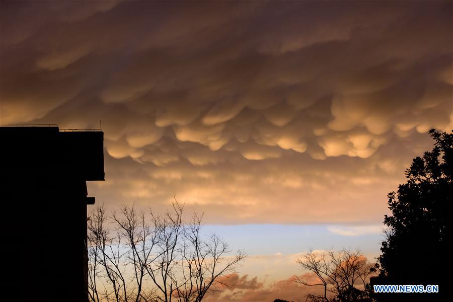 GUIYANG, 7 janvier (Xinhua) -- Des nuages Mammatus au-dessus de la ville de Guiyang, dans la province chinoise du Guizhou (sud-ouest), le 6 janvier 2020. (Photo : Liu Xu)