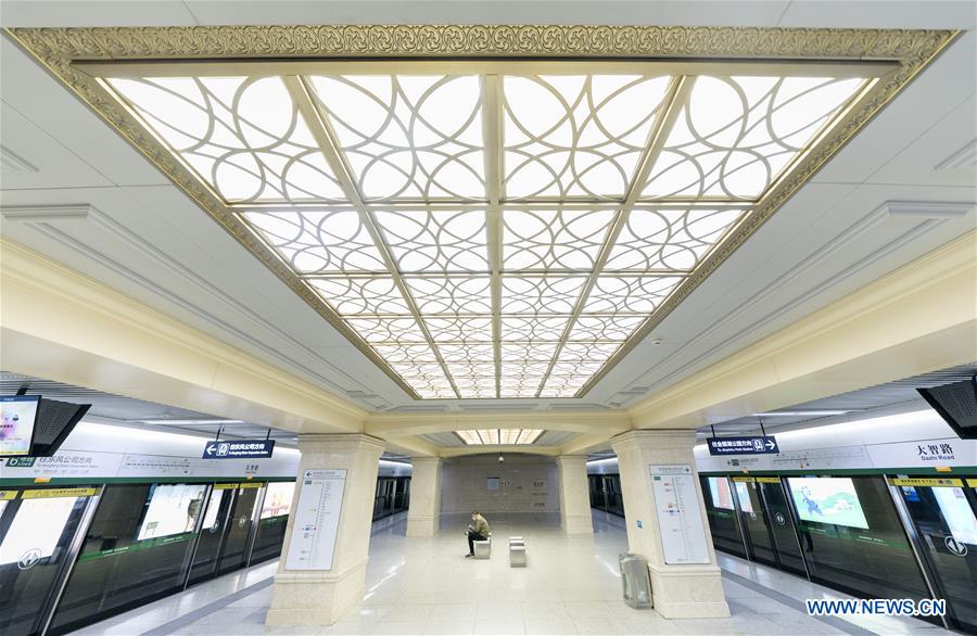 WUHAN, 30 mars (Xinhua) -- Un passager attend le métro dans une station de Wuhan, dans la province chinoise du Hubei (centre), le 29 mars 2020. Wuhan, ville du centre de la Chine qui était l'épicentre de l'épidémie de nouveau coronavirus (COVID-19), a rouvert samedi son métro après plus de deux mois de suspension en raison de l'épidémie. (Photo : Fei Maohua)
