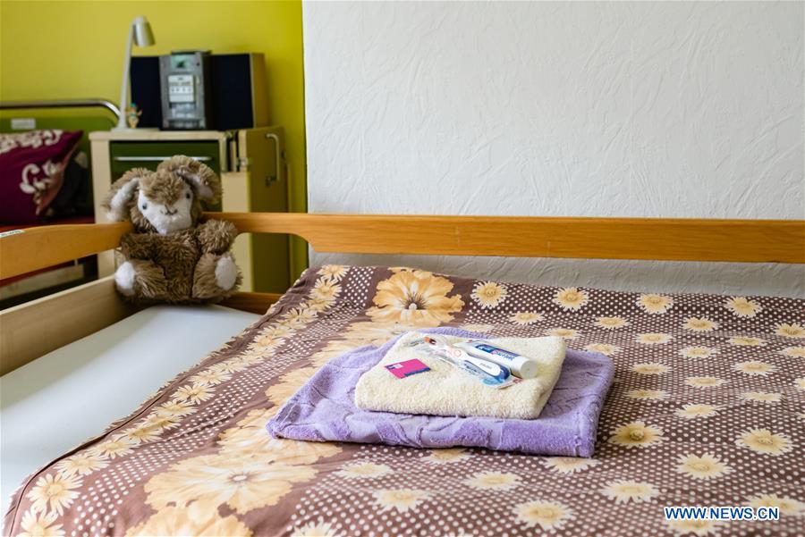 BERLIN, 16 mai (Xinhua) -- Des articles de première nécessité dans une chambre dans un centre de quarantaine destiné aux sans abris à Berlin, capitale allemande, le 15 mai 2020. Le premier centre de quarantaine de COVID-19 pour les sans abris d'Allemagne, capable d'abriter jusqu'à seize personnes, est entré en service à Berlin mercredi. (Photo : Binh Truong)