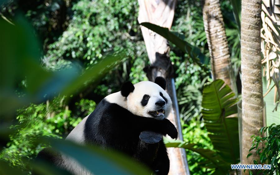 HAIKOU, 1er juin (Xinhua) -- Le panda géant "Shun Shun" dans le Parc tropical de la faune et jardin botanique de Hainan à Haikou, capitale de la province chinoise de Hainan (sud), le 1er juin 2020. Le Parc tropical de la faune et jardin botanique de Hainan a préparé des aliments spéciaux et des jouets pour les pandas géants "Gong Gong" et Shun Shun" dans le cadre d'un événement pour célébrer la Journée internationale de l'enfance. (Photo : Yang Guanyu)