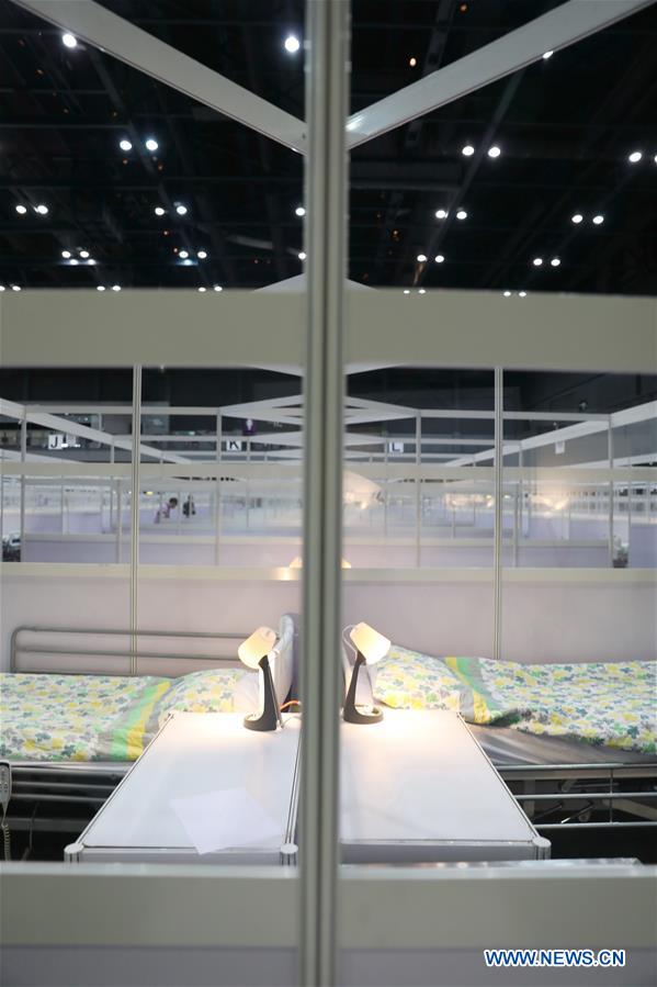 HONG KONG, 2 août (Xinhua) -- L'intérieur d'un hôpital préfabriqué pour les patients du COVID-19 à l'AsiaWorld-Expo de Hong Kong, dans le sud de la Chine, le 1er août 2020. Un hôpital préfabriqué installé à l'AsiaWorld-Expo, un site proche de l'Aéroport international de Hong Kong, a commencé à recevoir des patients atteints du COVID-19 présentant des symptômes légers samedi après-midi, selon l'Autorité hospitalière de Hong Kong. (Photo : Wu Xiaochu)