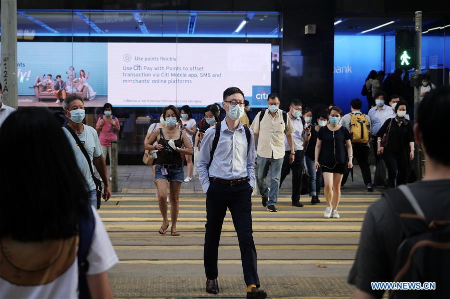 HONG KONG, 4 août (Xinhua) -- Des gens portant des masques dans une rue de Central à Hong Kong, dans le sud de la Chine, le 27 juillet 2020. (Photo : Wang Shen)