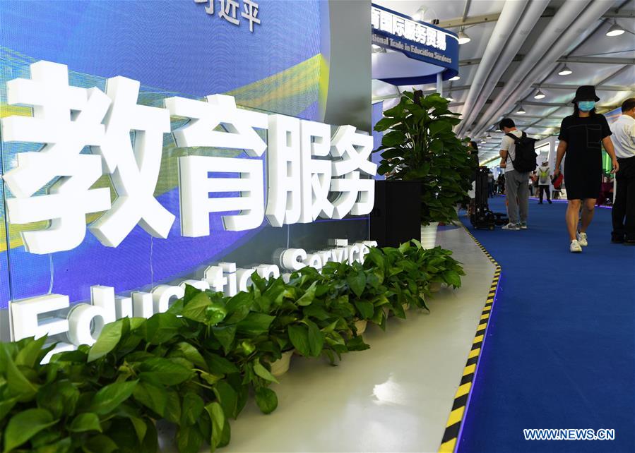 BEIJING, 5 septembre (Xinhua) -- Les gens visitent l'espace d'exposition des services éducatifs du Salon international du commerce des services de Chine 2020 à Beijing, capitale de la Chine, le 5 septembre 2020. Le Salon se déroule du 4 au 9 septembre à Beijing. (Photo : Zhang Chenlin)