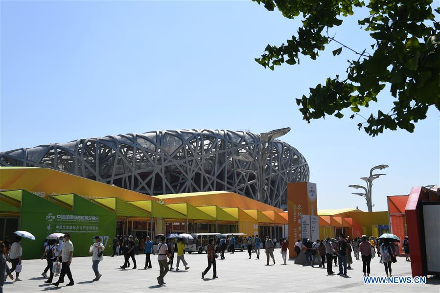 BEIJING, 7 septembre (Xinhua) -- Des gens visitent les zones d'exposition du Salon international du commerce des services de Chine 2020, à Beijing, capitale chinoise, le 7 septembre 2020. Le salon se déroule du 4 au 9 septembre à Beijing. (Photo : Lu Peng)