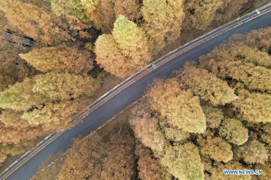 Paysage hivernal d'une forêt de sapins d'eau à Huai'an, dans la province chinoise du Jiangsu (est), le 27 novembre 2020. (Xinhua/Wan Zhen)