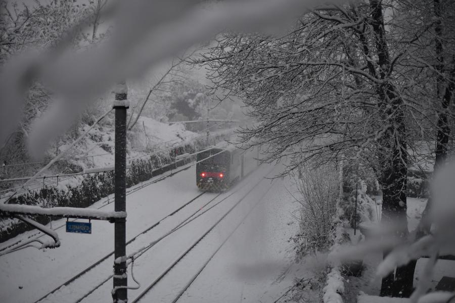Photo prise le 28 décembre 2020 montrant un tram sous la neige à Milan, en Italie, le 28 décembre 2020. (Xinhua/Daniele Mascolo)