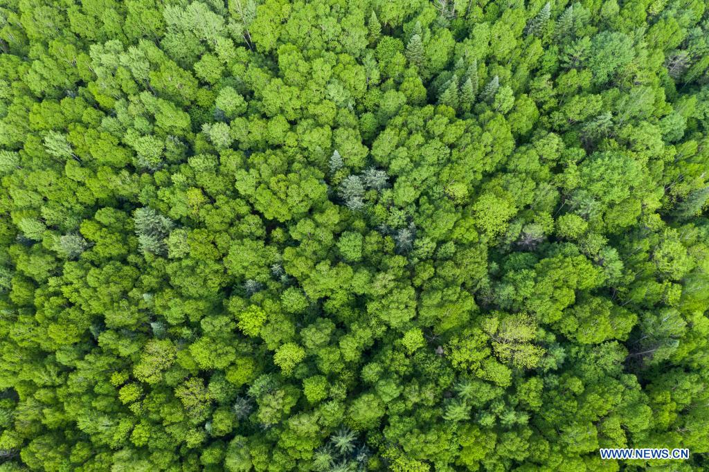 Photo aérienne prise le 2 juin 2021 montrant le paysage d'un parc forestier national à Yichun, dans la province du Heilongjiang (nord-est de la Chine). (Xinhua/Xie Jianfei)