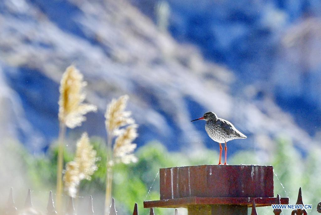 LHASSA, 4 juin (Xinhua) -- Un chevalier gambette dans la zone humide de Lhalu, à Lhassa, capitale de la région autonome du Tibet (sud-ouest), le 2 juin 2021. (Photo : Zhang Rufeng)