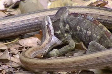 Un serpent avale un caméléon
