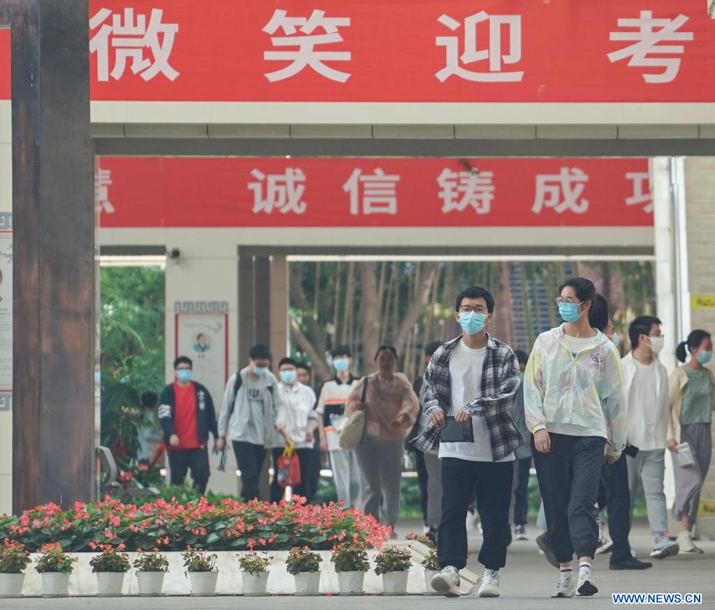 NANJING, 7 juin (Xinhua) -- Des candidats entrent dans un site de concours à Nanjing, dans la province orientale du Jiangsu, le 7 juin 2022. Le concours national d'entrée à l'université de la Chine, aussi connu sous le nom de Gaokao, a commencé mardi cette année. (Photo : Li Bo)