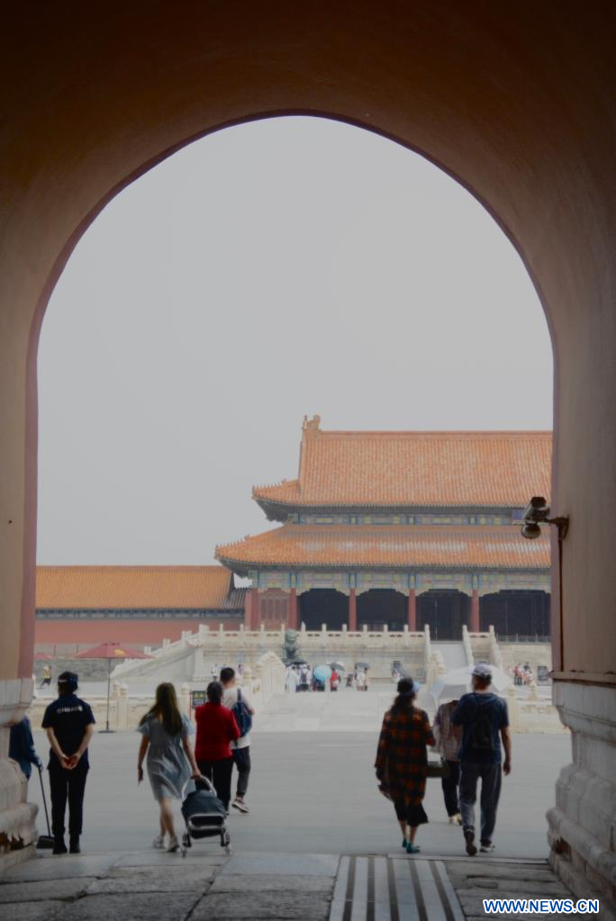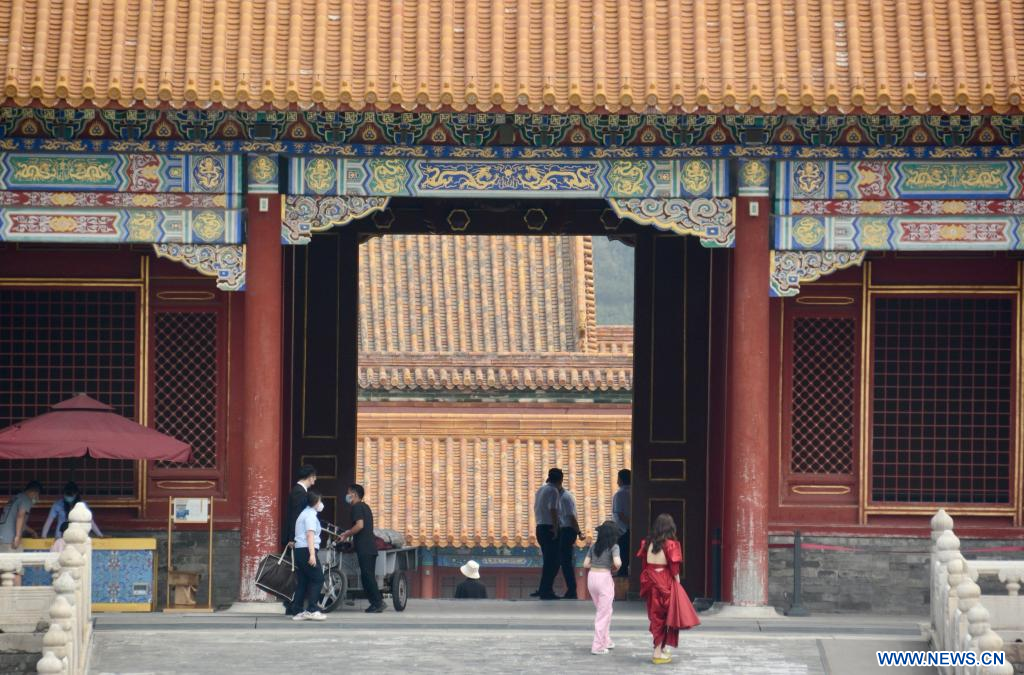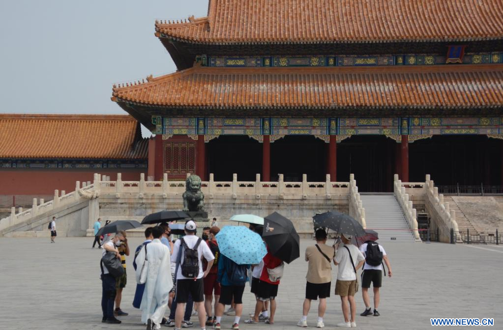 BEIJING, 20 juin (Xinhua) -- Des gens visitent le Musée du Palais, aussi connu sous le nom de Cité interdite, à Beijing, capitale chinoise, le 19 juin 2022. Avec l'amélioration de la situation de lutte contre l'épidémie dans la ville, le nombre de visiteurs au Musée du Palais a connu une augmentation progressive. (Photo : Li Xin)