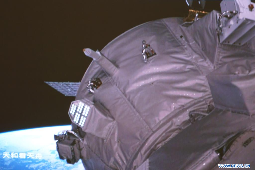 A 12h10 (heure de Beijing), Tianzhou-5 a effectué un rendez-vous automatisé et rapide, réalisant son amarrage au port d'amarrage arrière du module central de la station spatiale Tianhe, a précisé l'agence.