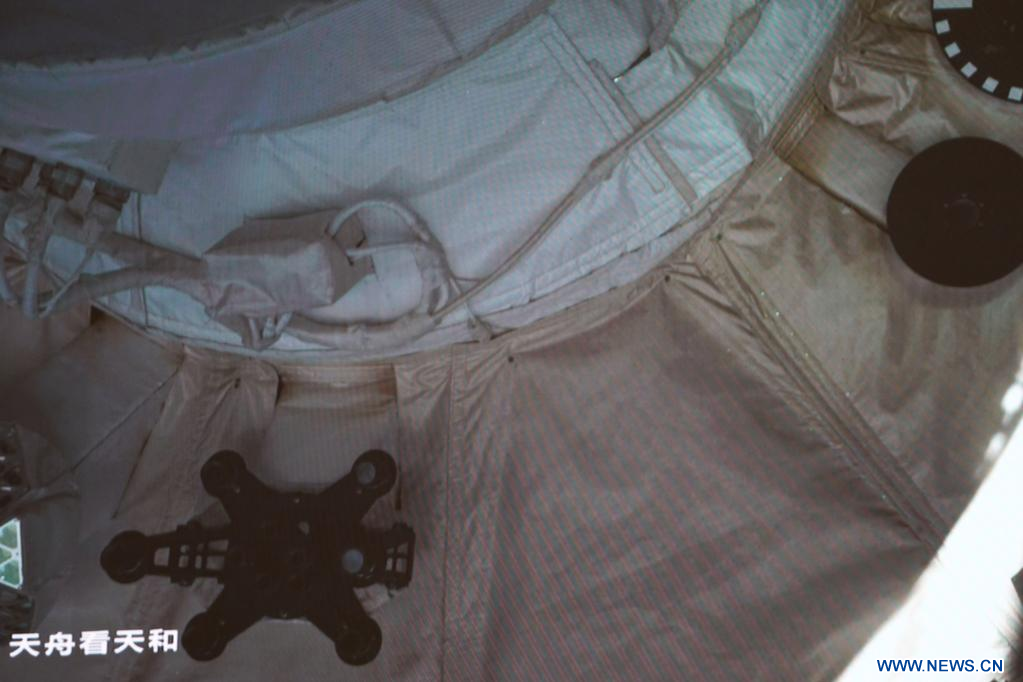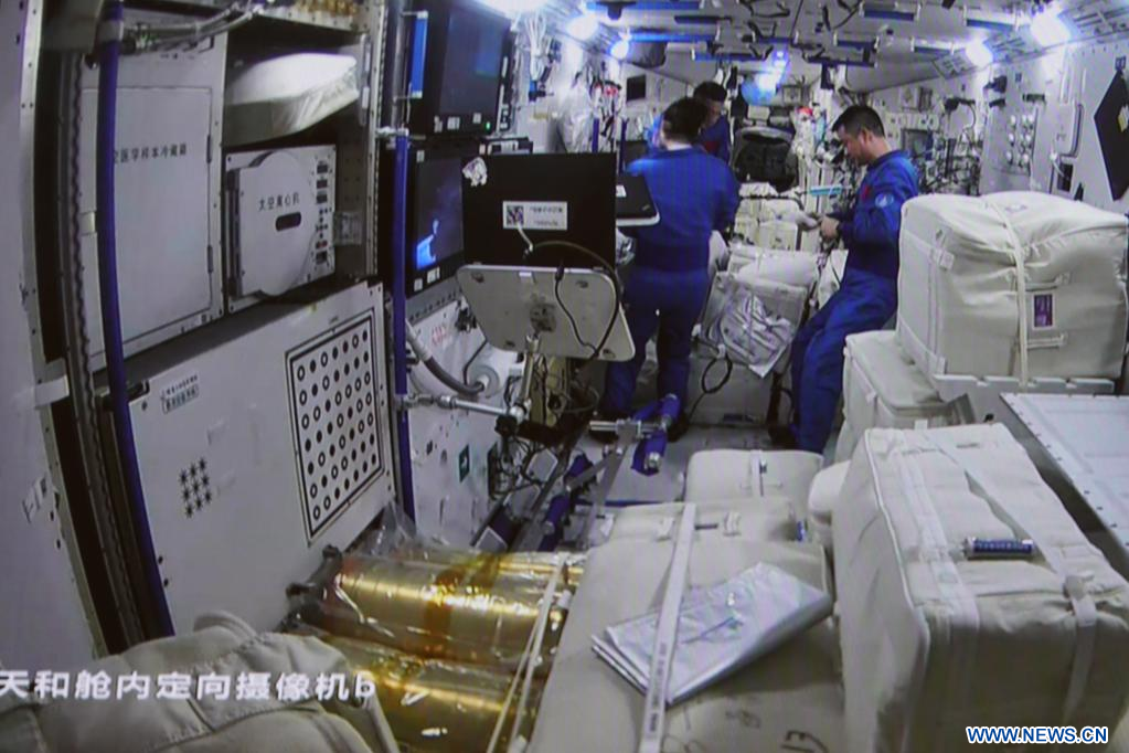 C'est la première fois que les astronautes chinois assistent à l'arrivée d'un vaisseau spatial cargo de l'intérieur de la station spatiale du pays.