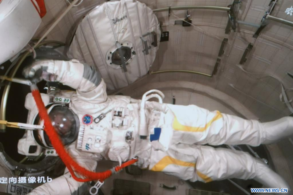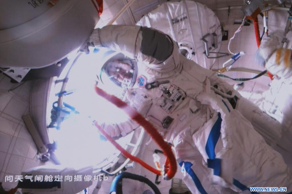 Au cours des activités extravéhiculaires d'une durée d'environ cinq heures et demie, ils ont installé un "pont" hors de la cabine afin de relier le module central au laboratoire Wentian, et au laboratoire Mengtian, tandis que M. Cai a effectué la première sortie dans l'espace à travers le pont.