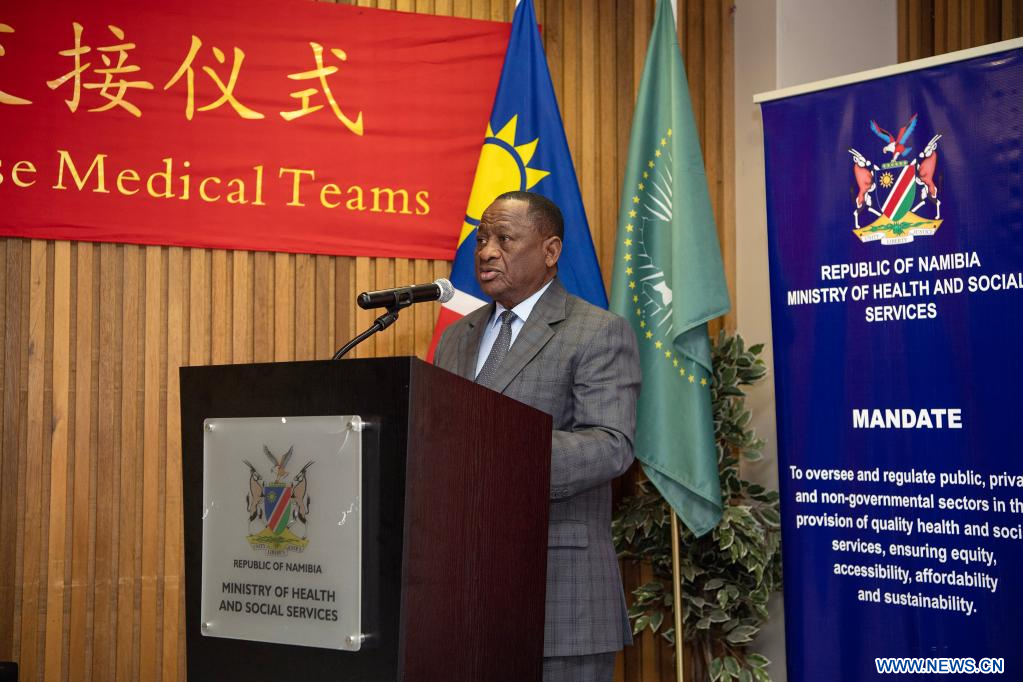 WINDHOEK, 2 mars (Xinhua) -- Le ministre namibien de la Santé et des services sociaux Kalumbi Shangula a accueilli quatre nouveaux membres de la 15e équipe médicale chinoise en Namibie lors d'une réception organisée jeudi à Windhoek, la capitale namibienne.