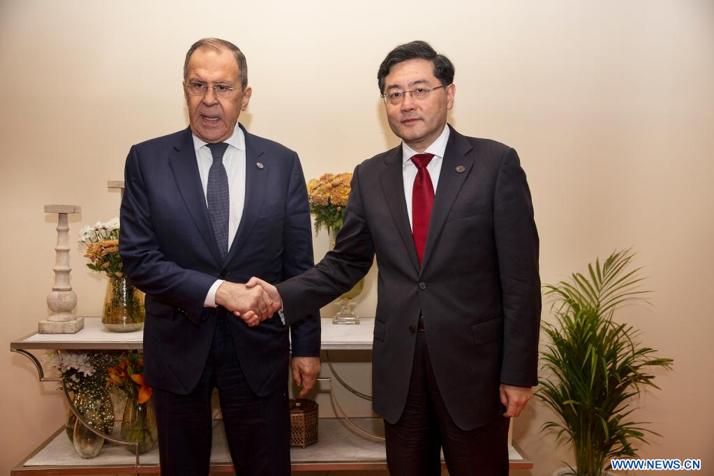 NEW DELHI, 2 mars (Xinhua) -- Le ministre chinois des Affaires étrangères Qin Gang a rencontré jeudi, en marge de la réunion des ministres des Affaires étrangères du Groupe des 20 (G20) à New Delhi, en Inde, son homologue russe Sergueï Lavrov pour discuter des relations entre les deux pays et d'un règlement politique de la crise ukrainienne.
