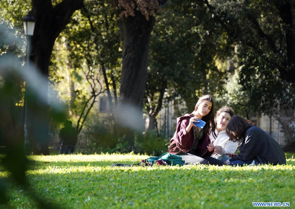 ROME, 19 mars (Xinhua) -- Des jeunes gens profitent de leur temps de loisir à Rome, en Italie, le 18 mars 2023. (Xinhua/Jin Mamengni)
