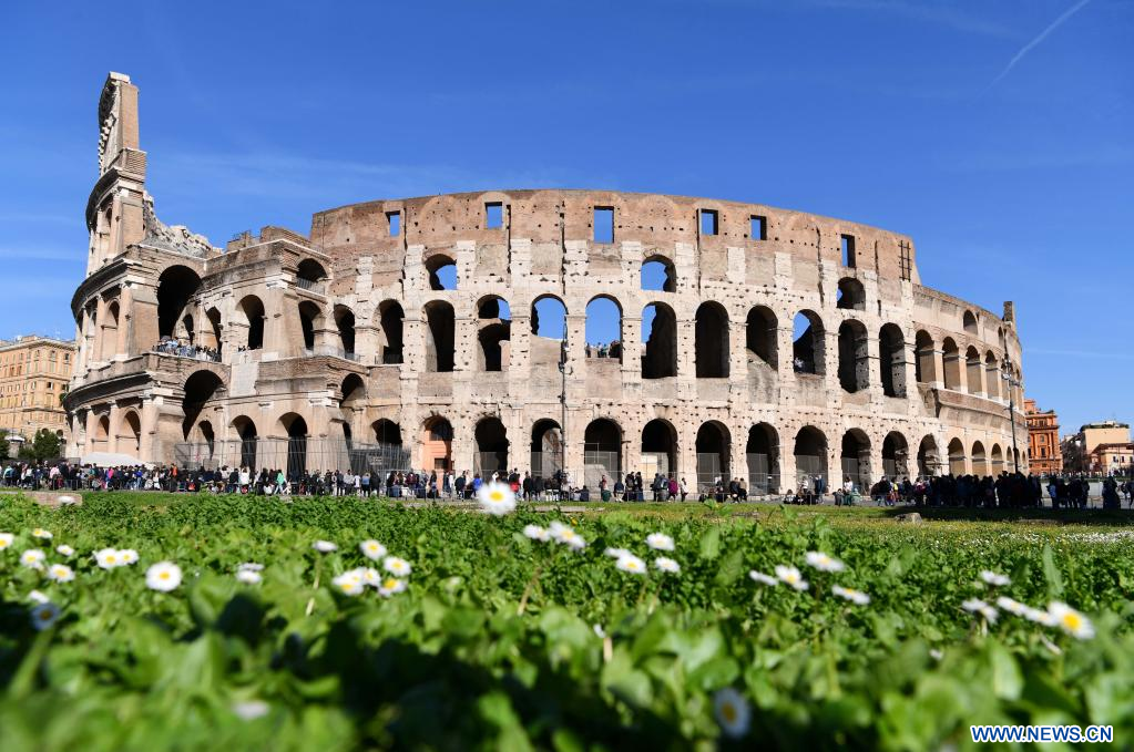 ROME, 19 mars (Xinhua) -- Des touristes visitent le Colisée à Rome, en Italie, le 18 mars 2023. (Xinhua/Jin Mamengni)