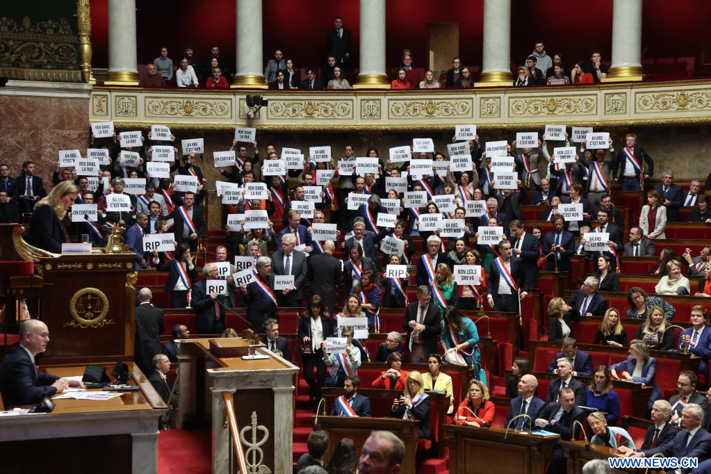 PARIS, 20 mars (Xinhua) -- La réforme controversée des retraites de France est considérée comme adoptée après que l'Assemblée nationale a rejeté lundi soir les deux motions de censure contre le gouvernement, qui a réussi à faire passer le projet sans vote grâce à un levier constitutionnel.