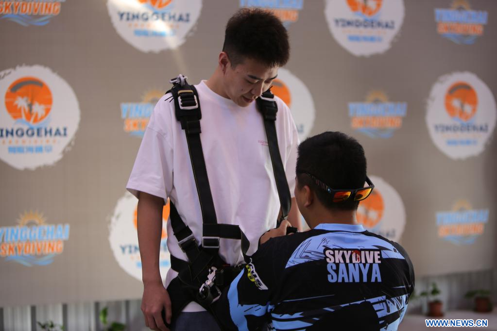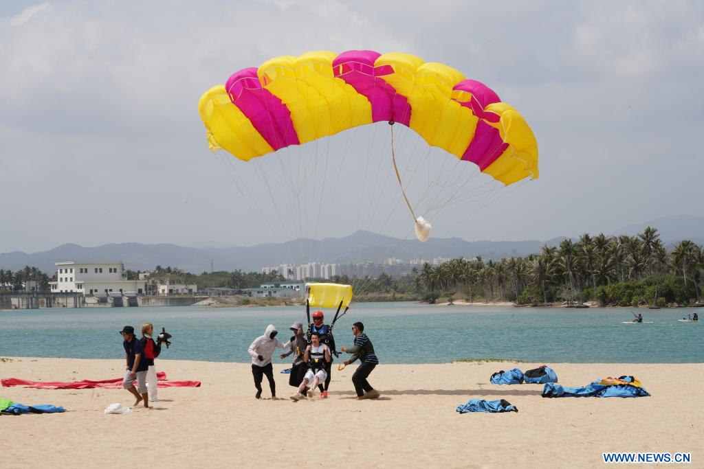 Une vue plongeante du beau paysage côtier et des forêts invite les touristes à Hainan à essayer les sports aériens. Yin Tao, instructeur de chute libre accélérée du Centre de parachutisme de Yinggehai, situé dans le district autonome Li de Ledong, affirme que l'environnement naturel unique de Hainan incite les touristes à essayer le saut en parachute, pendant lequel ils se dépassent, révèlent leur personnalité et sortent de la routine.