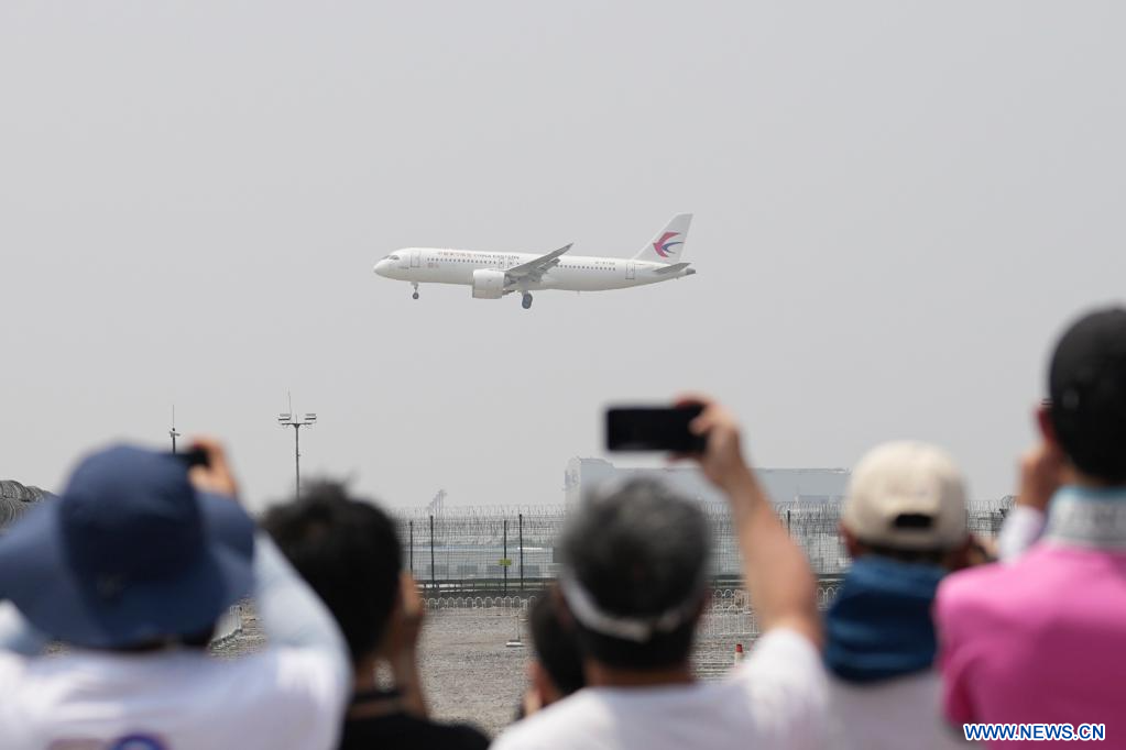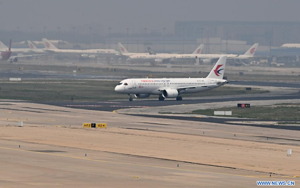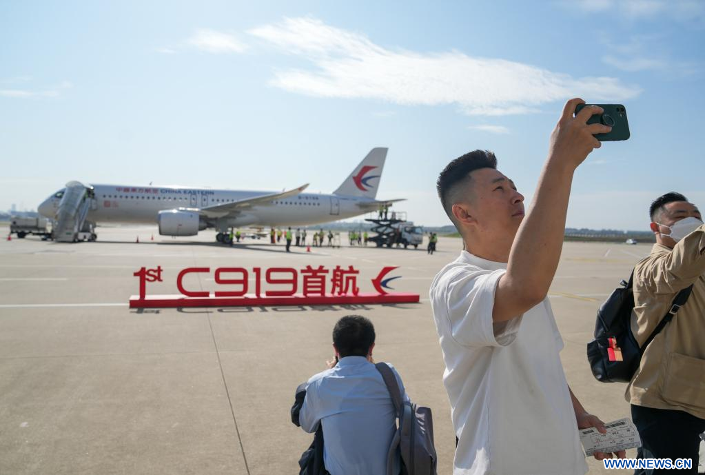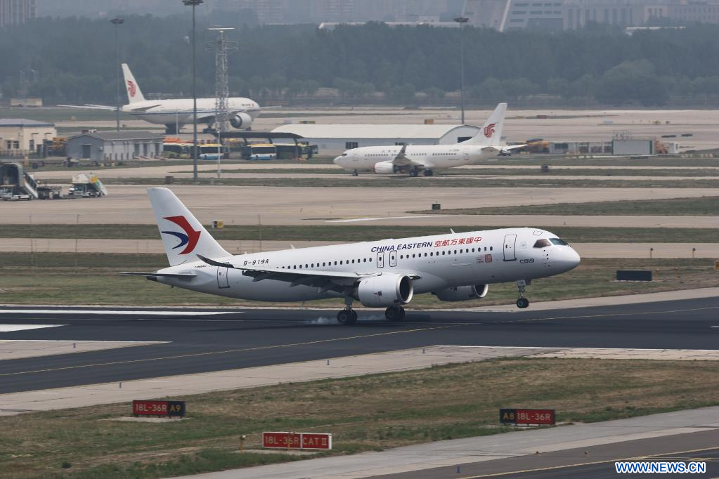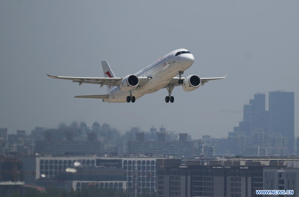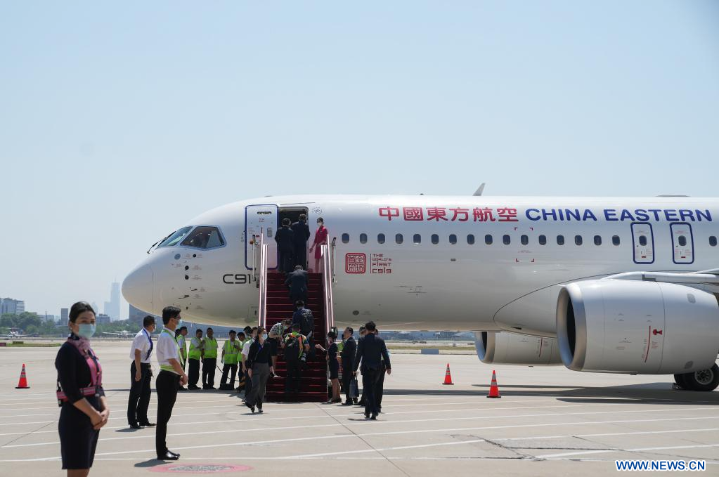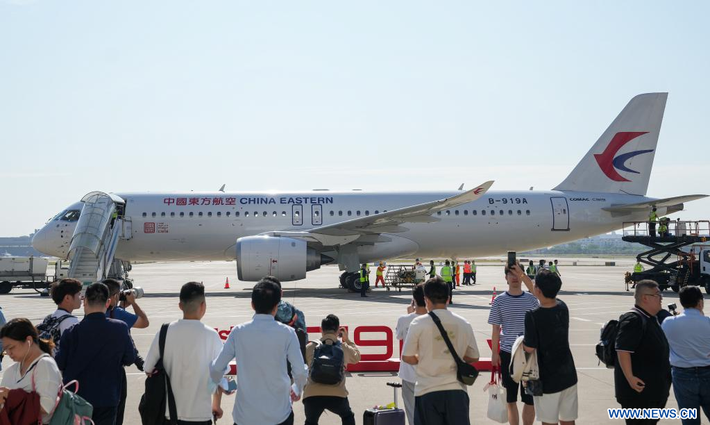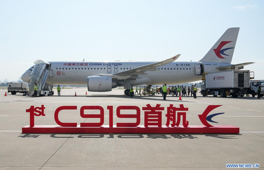 SHANGHAI, 28 mai (Xinhua) -- Le C919, le grand avion de passagers développé par la Chine, a effectué dimanche son premier vol commercial de Shanghai à Beijing, marquant son entrée officielle sur le marché de l'aviation civile.