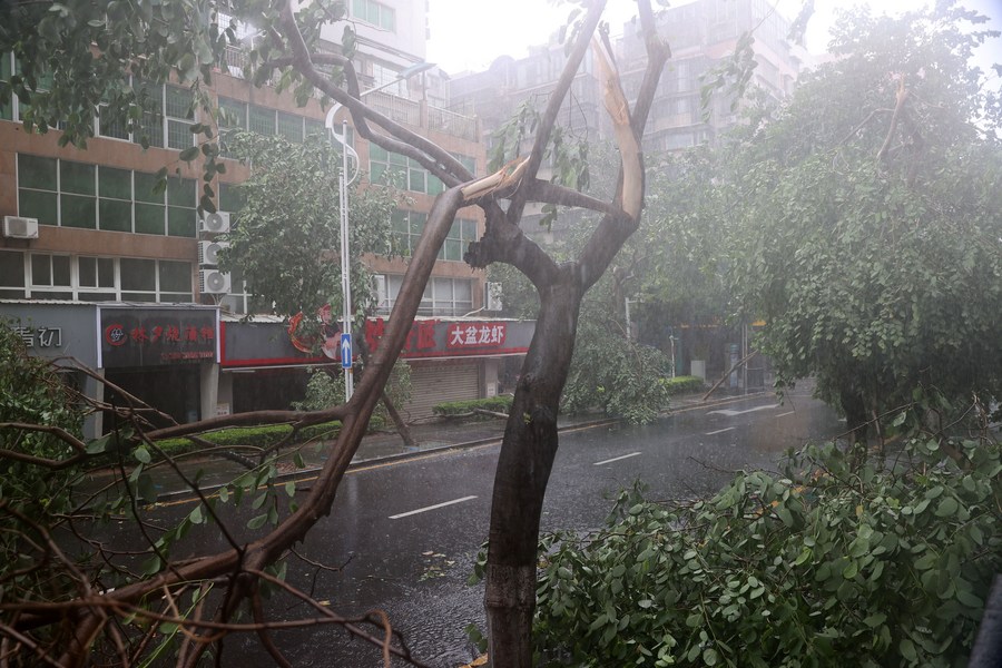 Des arbres endommagés par le vent dans l'arrondissement de Siming, à Xiamen, dans la province chinoise du Fujian (sud-est), le 28 juillet 2023. (Photo : Zeng Demeng)