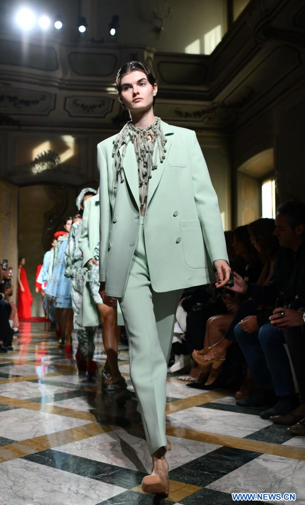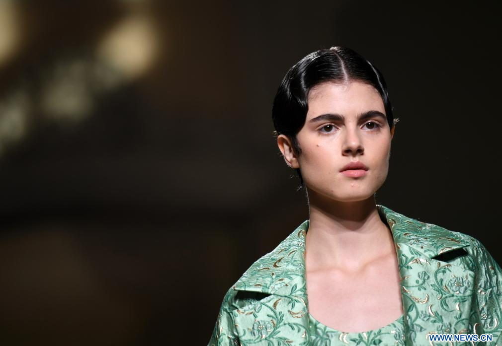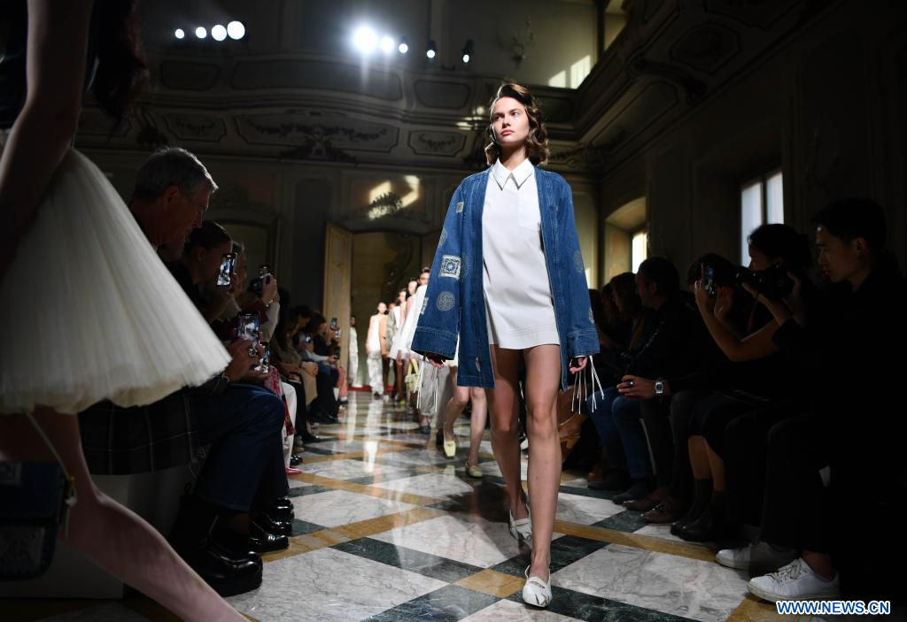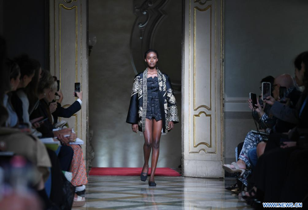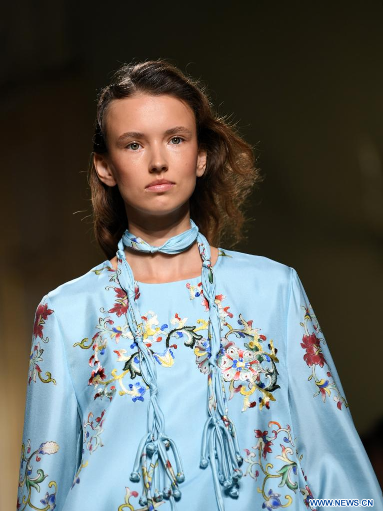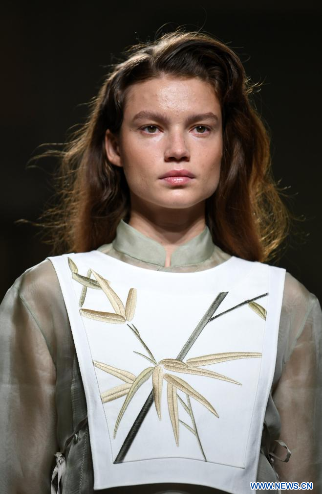 GUIYANG, 25 septembre (Xinhua) -- Lors de la semaine de la mode de Milan, la broderie Miao, artisanat traditionnel de l'ethnie Miao, attire l'attention des créateurs de mode du monde entier.
