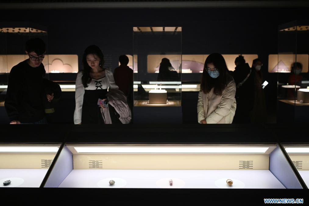 YINCHUAN, 11 décembre (Xinhua) -- Des visiteurs regardent des tabatières exposées au musée du Ningxia à Yinchuan, dans la région autonome Hui du Ningxia, dans le nord-ouest de la Chine, le 10 décembre 2023. L'exposition présente 26 tabatières du musée du Ningxia et 236 tabatières du musée des Trois Gorges de Chine à Chongqing (sud-ouest). (Photo : Wang Peng)