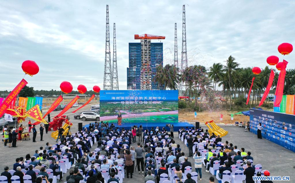 HAIKOU, 29 décembre (Xinhua) -- Les travaux de construction ont été achevés vendredi sur la rampe de lancement No 1 du premier site chinois de lancement commercial d'engins spatiaux, dans la ville de Wenchang, dans la province insulaire de Hainan, dans le sud de la Chine.