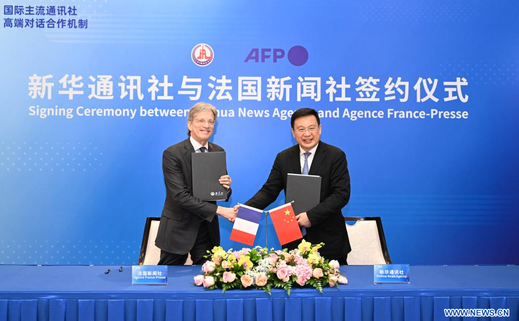 Le président de Xinhua, Fu Hua, et le président-directeur général de l'AFP, Fabrice Fries, ont signé conjointement ce mémorandum d'entente. Il s'agit du premier fruit concret de la coopération depuis la mise en place d'un mécanisme de dialogue et de coopération de haut niveau pour les principales agences de presse internationales dans le cadre du Sommet mondial des médias en décembre de l'année dernière.