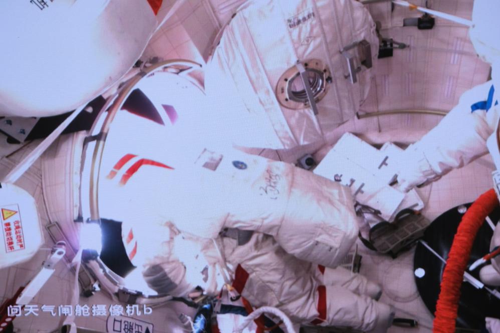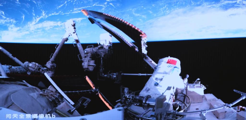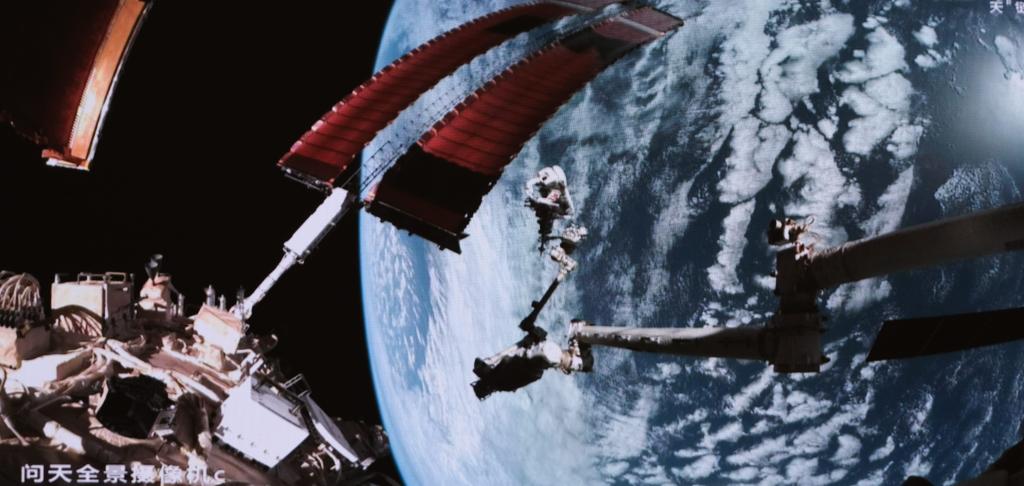 Ye Guangfu, Li Cong et Li Guangsu ont travaillé durant environ huit heures et demie pour accomplir de multiples tâches, notamment l'installation de dispositifs de protection contre les débris spatiaux, avec l'aide du bras robotique de la station spatiale et d'une équipe sur Terre.
