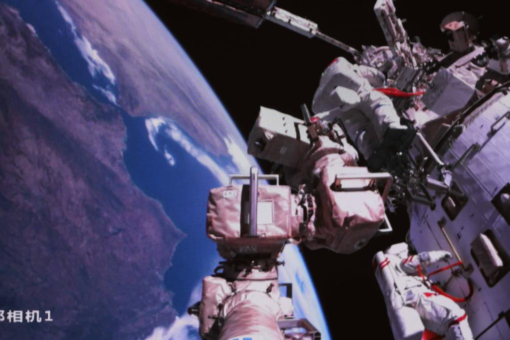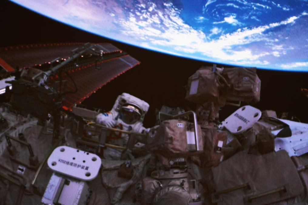 Avec l'assistance du bras robotique de la station spatiale et de chercheurs sur Terre, ils ont installé des dispositifs de protection aux débris spatiaux pour les gazoducs, les câbles et les équipements clés à l'extérieur de la station spatiale Tiangong, et mené une inspection extravéhiculaire.