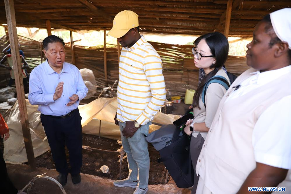 Lin Zhanxi (à droite), professeur à l'Université d'agriculture et de sylviculture du Fujian (Chine), visite un atelier de culture de champignons à Kigali, au Rwanda, le 2 août 2024. Le Juncao, qui signifie littéralement "champignon" et "herbe", est une technique agricole permettant de faire pousser des champignons. Cette technique inventée dans les années 1980 par le professeur Lin a profité à plus de 100 pays, dont le Rwanda. (Xinhua/Ji Li)