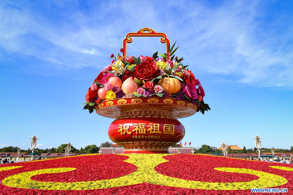 Un panier de fleurs de 18 mètres de haut a été installé sur la place Tian'anmen et dix parterres de fleurs de différents styles ont été mis en place le long de l'avenue Chang'an, selon Liu Mingxing, du Bureau municipal des forêts et des parcs de Beijing.