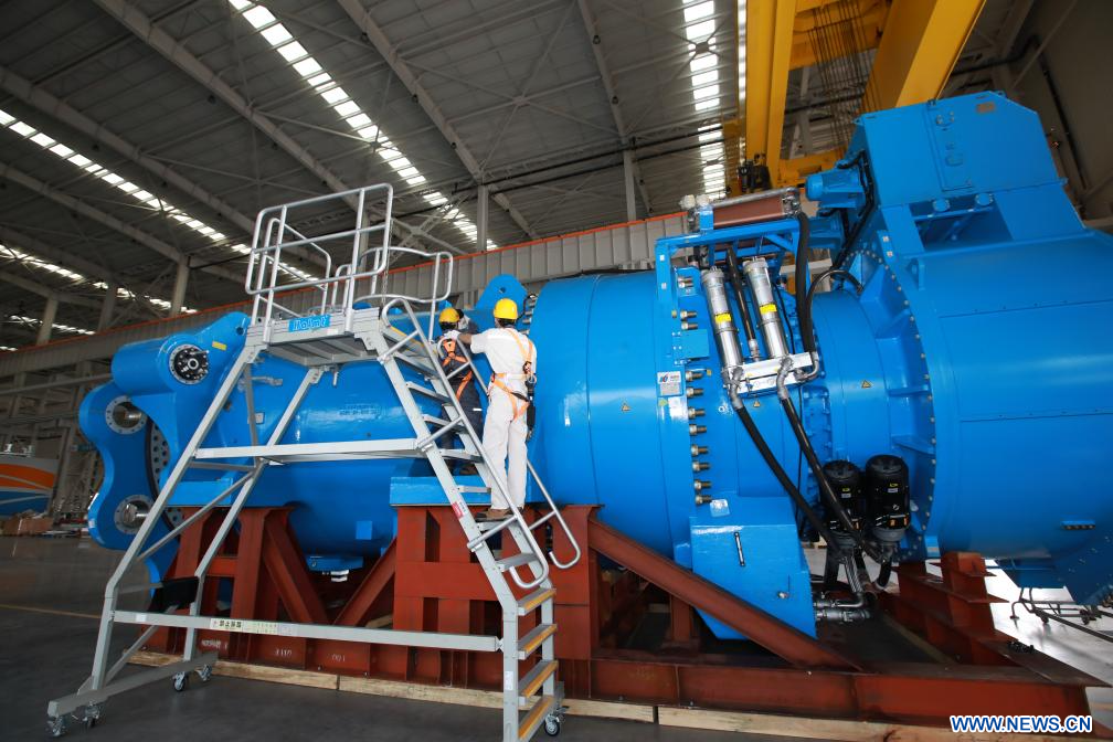 NANJING, 12 octobre (Xinhua) -- La plus puissante éolienne offshore flottante du monde, avec une capacité de production de 20 mégawatts, est sortie de la chaîne de production dans la ville de Yancheng, dans la province chinoise du Jiangsu (est), selon le principal constructeur de trains du pays, CRRC Corporation Limited (CRRC).