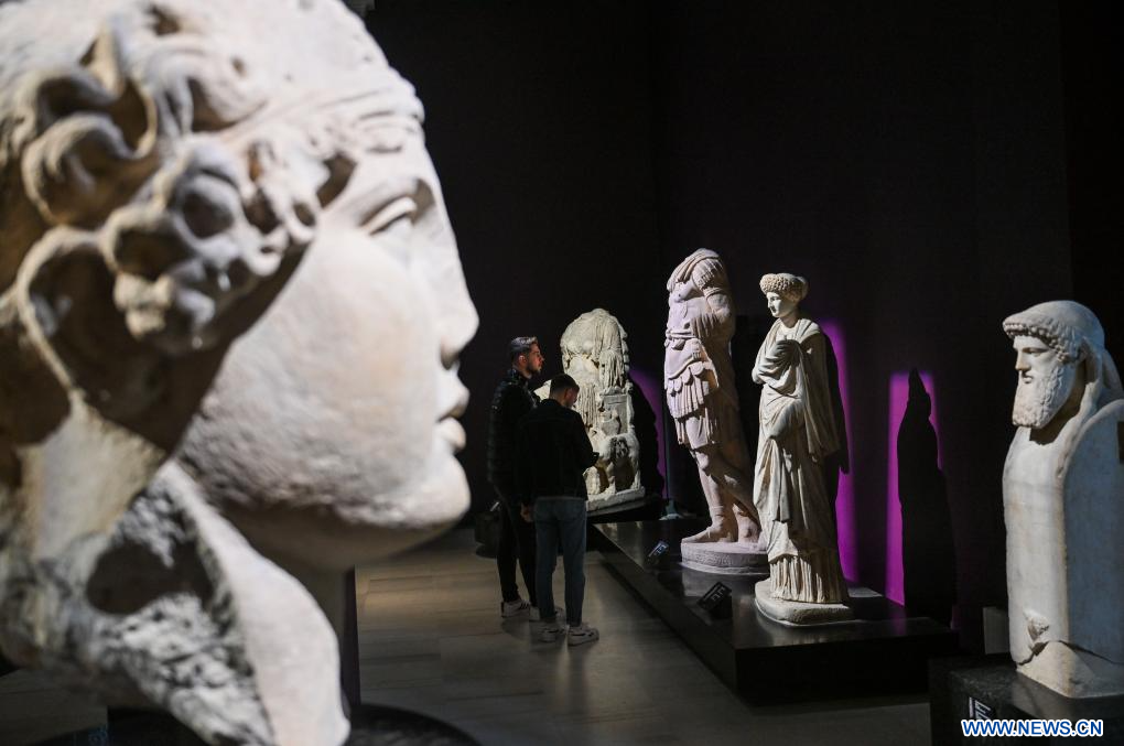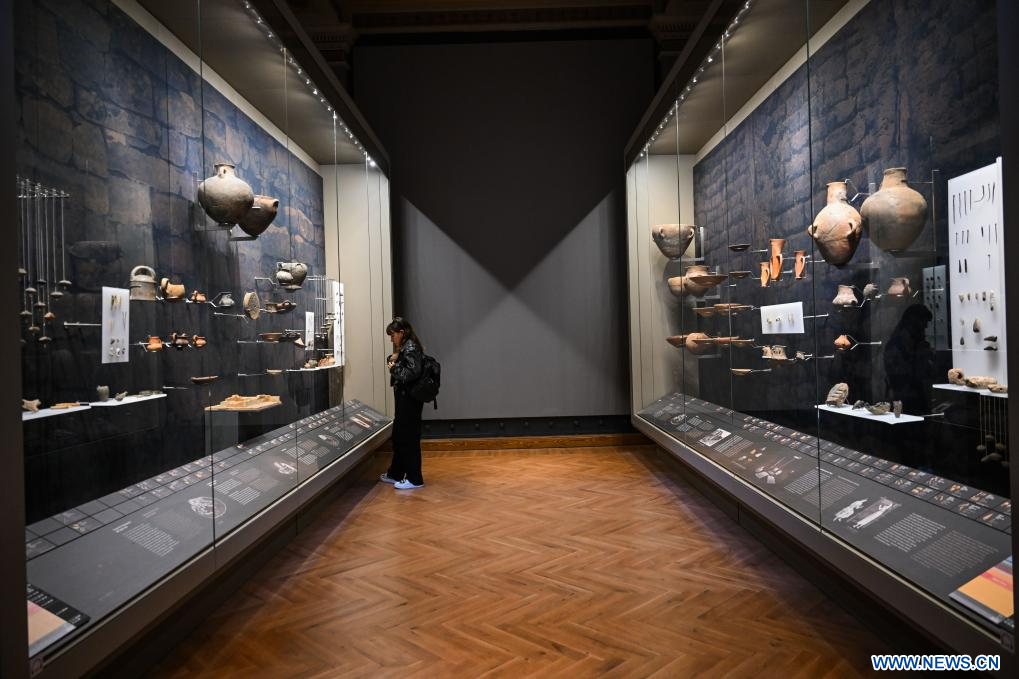 ISTANBUL, 18 octobre (Xinhua) -- Photo prise le 17 octobre 2024 montrant une visiteuse au Musée archéologique d'Istanbul, en Turquie. Etabli au XIXe siècle, ce musée est l'un des plus connus du monde. (Xinhua/Liu Lei)