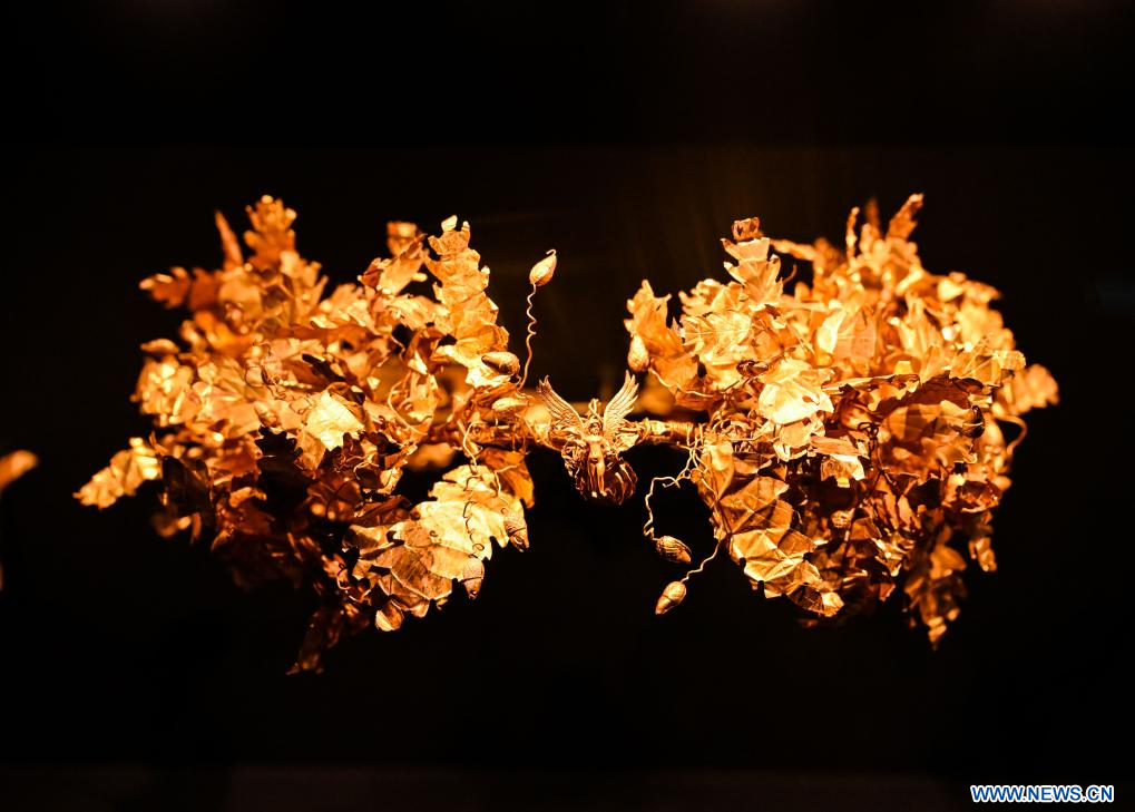 ISTANBUL, 18 octobre (Xinhua) -- Photo prise le 17 octobre 2024 montrant une couronne exposée au Musée archéologique d'Istanbul, en Turquie. Etabli au XIXe siècle, ce musée est l'un des plus connus du monde. (Xinhua/Liu Lei)