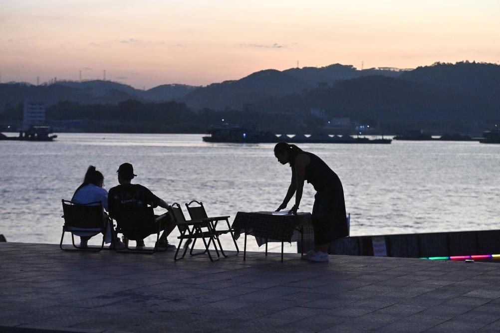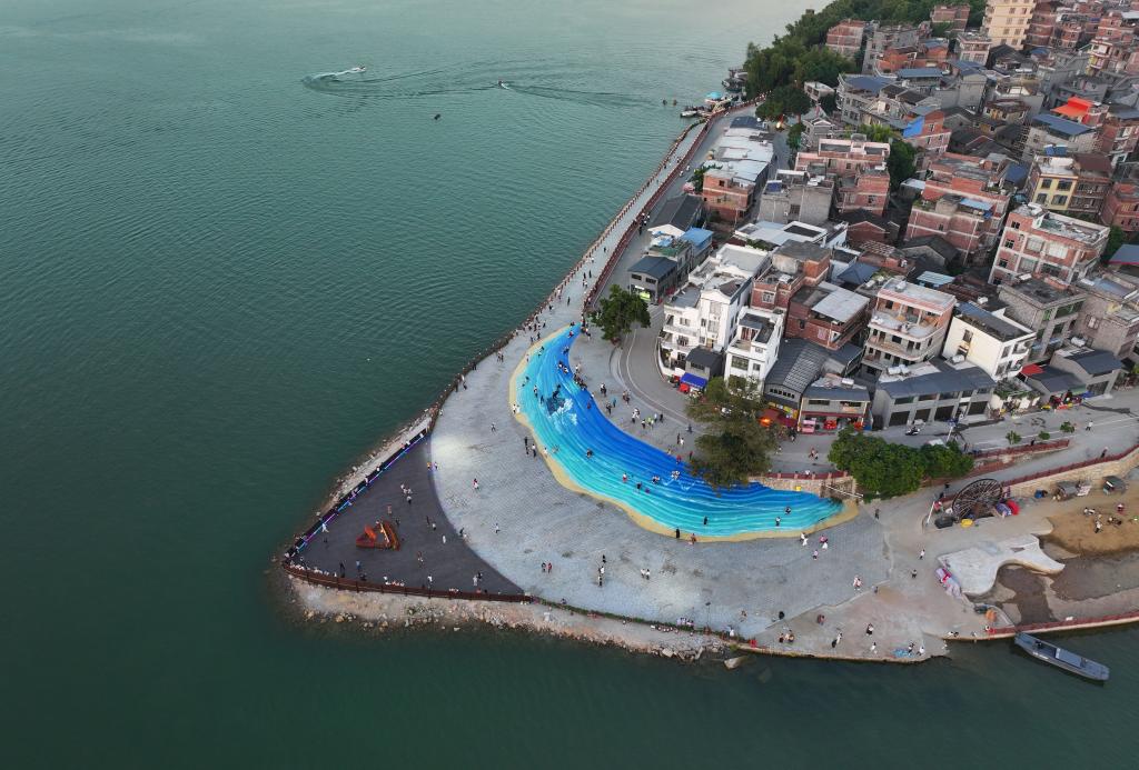 WUZHOU, 18 novembre (Xinhua) -- Des touristes profitent du paysage du village de Sizhou, dans l'arrondissement de Changzhou, à Wuzhou, ville de la région autonome Zhuang du Guangxi (sud de la Chine), le 14 novembre 2024. Installé sur l'île de Sizhou, au milieu de la rivière Xijiang, le village bénéficie d'un riche patrimoine culturel immatériel et d'un magnifique paysage naturel. Ces atouts ont permis à Sizhou de devenir une destination touristique prisée. (Photo : Huang Xiaobang)