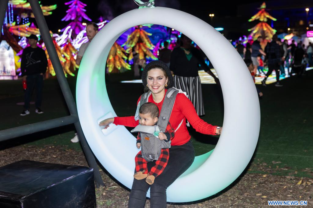 DALLAS, 25 novembre (Xinhua) -- Des gens visitent le Festival des lumières Tianyu dans la banlieue de Dallas, au Texas, aux Etats-Unis, le 24 novembre 2024. L'événement, qui se déroule du 8 novembre 2024 au 18 janvier 2025, offre aux visiteurs des installations lumineuses avec des créations acrobatiques et des spectacles folkloriques présentés par des artistes chinois. (Xinhua/Dan Tian)