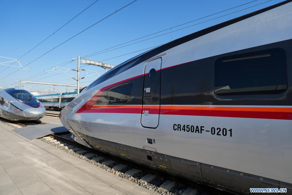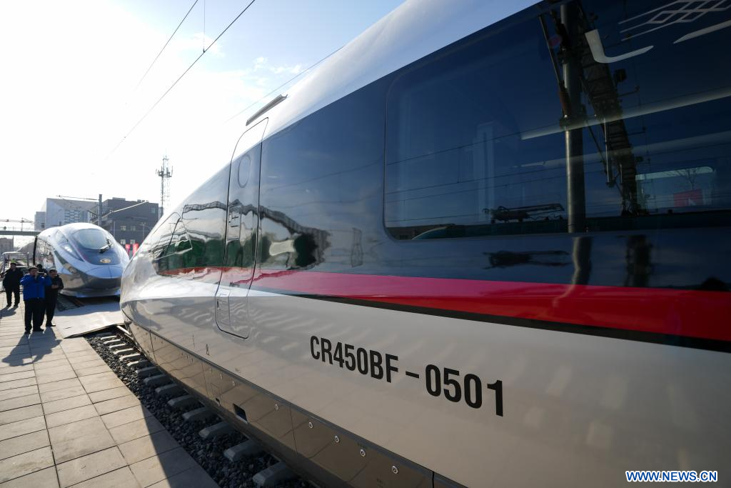 BEIJING, 29 décembre (Xinhua) -- Un prototype du train à grande vitesse CR450 qui roulera à 400 kilomètres à l'heure a été présenté dimanche à Beijing, a déclaré l'opérateur ferroviaire du pays.