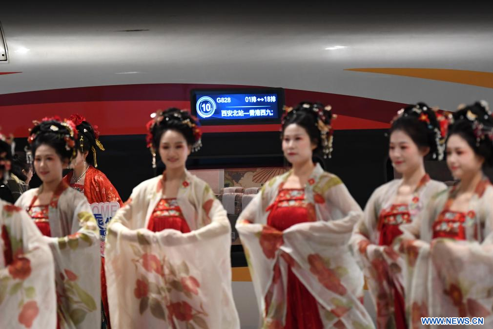 Un train est parti de Xi'an, capitale de la province du Shaanxi (nord-ouest), à 11h04, et un autre a quitté Wuhan, capitale de la province du Hubei (centre), vers 16h00. Les deux gares de départ ont accueilli des spectacles et d'autres activités de célébration.